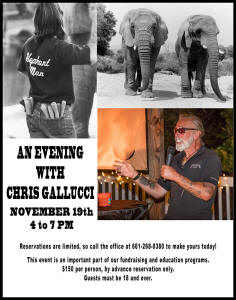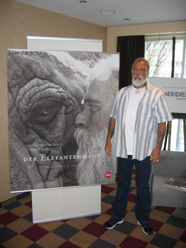 Chris with PosterThis not just a story about a man and an elephant. This story is about a person with no destination, a person with a huge hole through the middle of him.